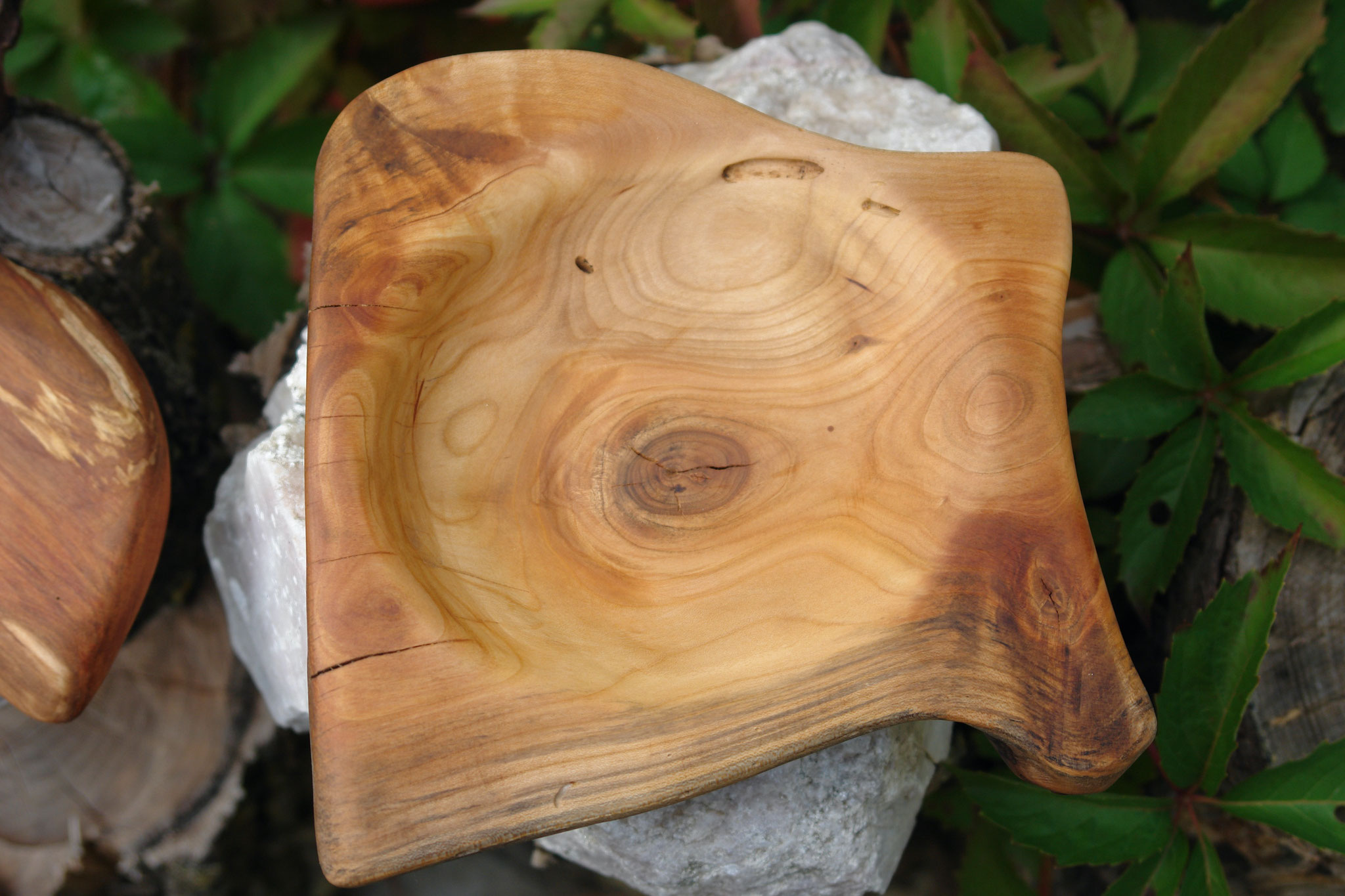 Da ich oft schon angeschlagene Bäume ernte, sind viele meiner Produkte durch Verwitterung und Insekten „gezeichnet“. Das macht den Bezug zum natürlichen Lauf des Lebens sichtbar und jedes Stück ganz besonders.